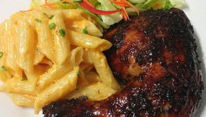 Oven Honey Jerk Chicken with Stovetop Mac n Cheese